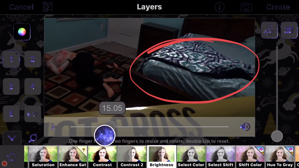 The next part of editing was color correcting and adding filters. In mystery and crime movies they all typically will have darker filters and dimmer lighting to establish the scary mood. Unfortunately, the lighting of the clips that we had were extremely bright because of the ceiling fan that only had one on and off switch. So the high-key lighting that we had obviously wouldn’t work for our title sequence. When trying to find filters on iMovie, they were not turning out as planned and the look was not how we envisioned it to be. Thankfully, Taylor already has an interest in editing prior to this project and had an app called Video Star downloaded onto her phone. She paid money for this, so in this aspect we had more of an advantage than others on this project, but it definitely worked in our favor. Using this app, Taylor was able to have a wider variety of options about the filters and it made the scenes look a lot scarier and darker. Taylor showed me what she had so far, and it looked to me that the bed was a little too overexposed in the crime scene parts, so she lowered the exposure and edited a black screen on top with 50% transparency to make it achieve the darker look.
