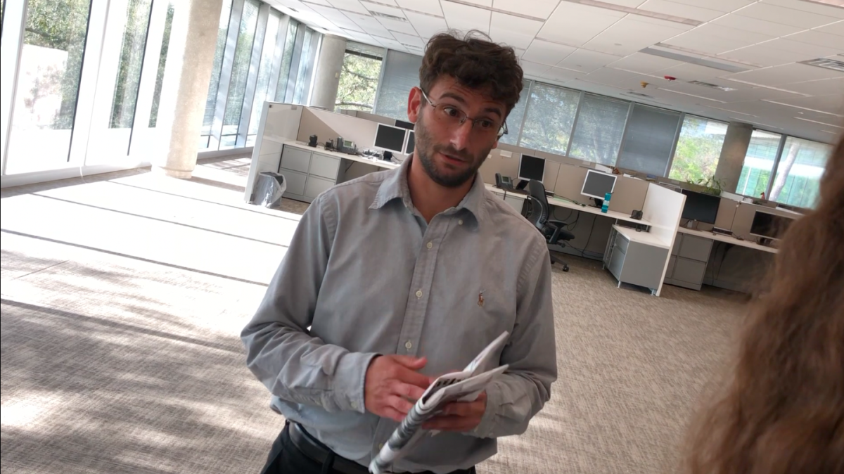 So we finally found a location and time to reshoot those horrible office shots. After stressing about this, we did eventually fix our mistakes. We went to the Verizon building where Taylor’s mom works and she was able to talk to the security guard to let us in and film and do everything that we needed to do. We felt a lot better about filming this time because we had no time constrictions and we were almost alone in there so there were no distractions or unwanted figures in the background (like the school janitor).